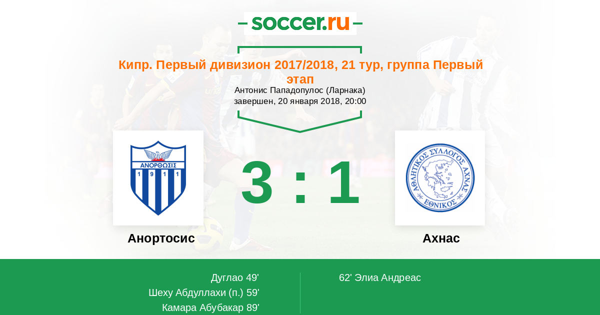Протокол матча Анортосис против Ахнас