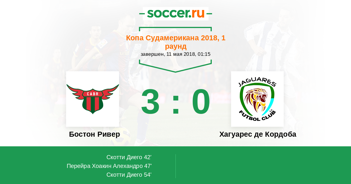 Протокол матча Бостон Ривер против Хагуарес де Кордоба
