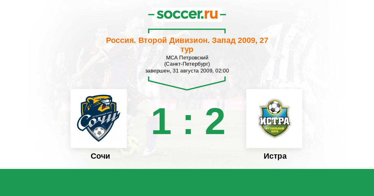 Россия. Вторая лига. Группа 2 02.08.2011 Петротрест Логотип футбольный клуб Петротрест (Сочи) 1:0 Логотип футбольный клуб Истра Истра