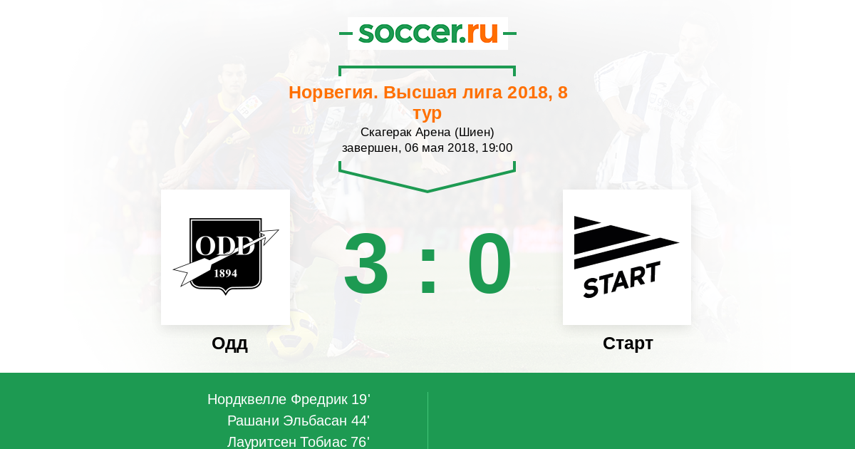 Протокол матча Одд против Старт