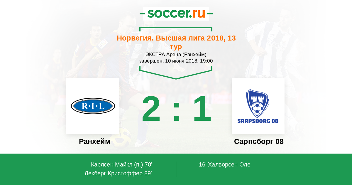 Протокол матча Ранхейм против Сарпсборг 08