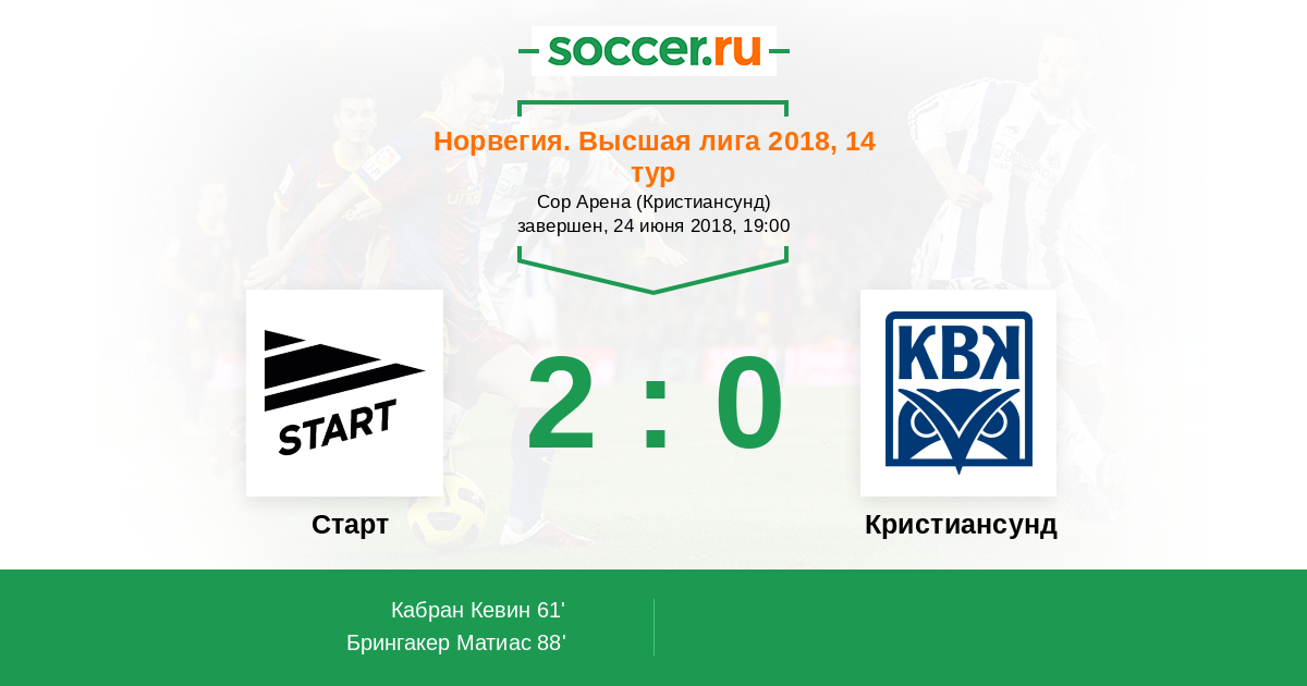 Протокол матча Старт против Кристиансунд