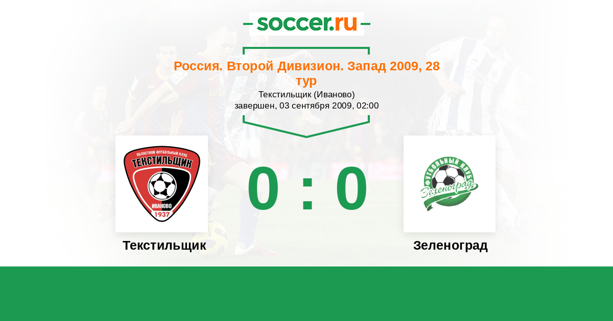 Россия. Вторая лига. Группа 2 22.05.2009 Зеленоград Логотип футбольный клуб Зеленоград (Москва) 0:0 Логотип футбольный клуб Текстильщик (Иваново) Текстильщик