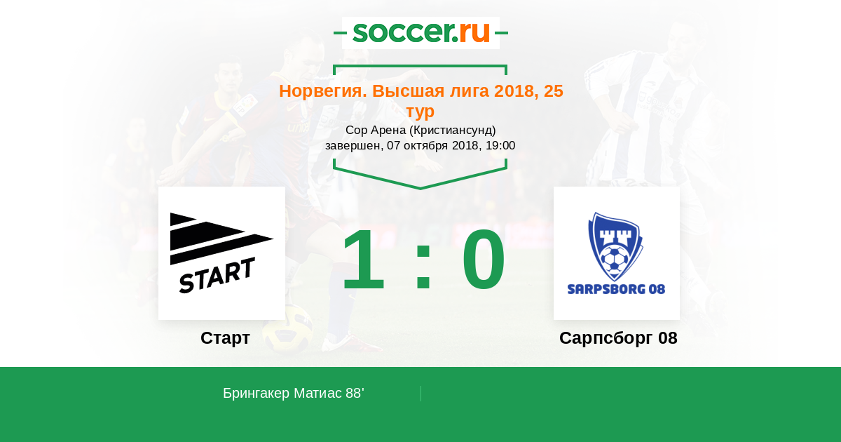Протокол матча Старт против Сарпсборг 08