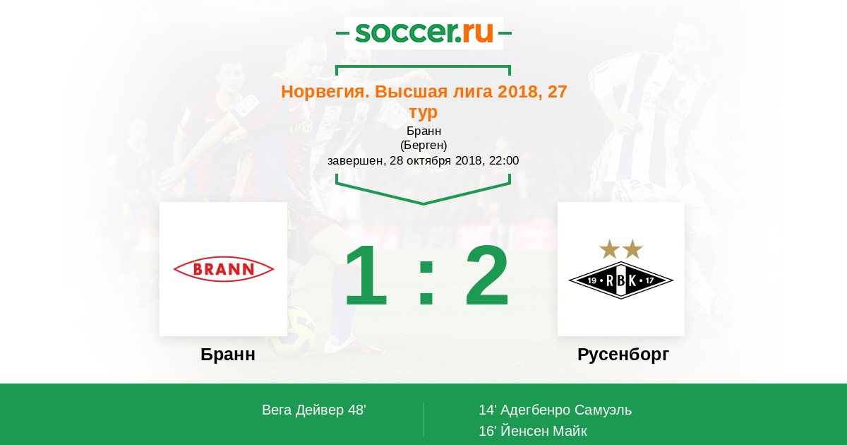 Протокол матча Бранн против Русенборг
