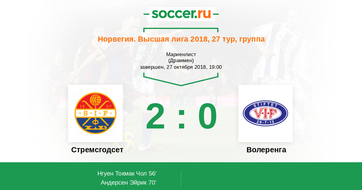 Протокол матча Стремсгодсет против Волеренга