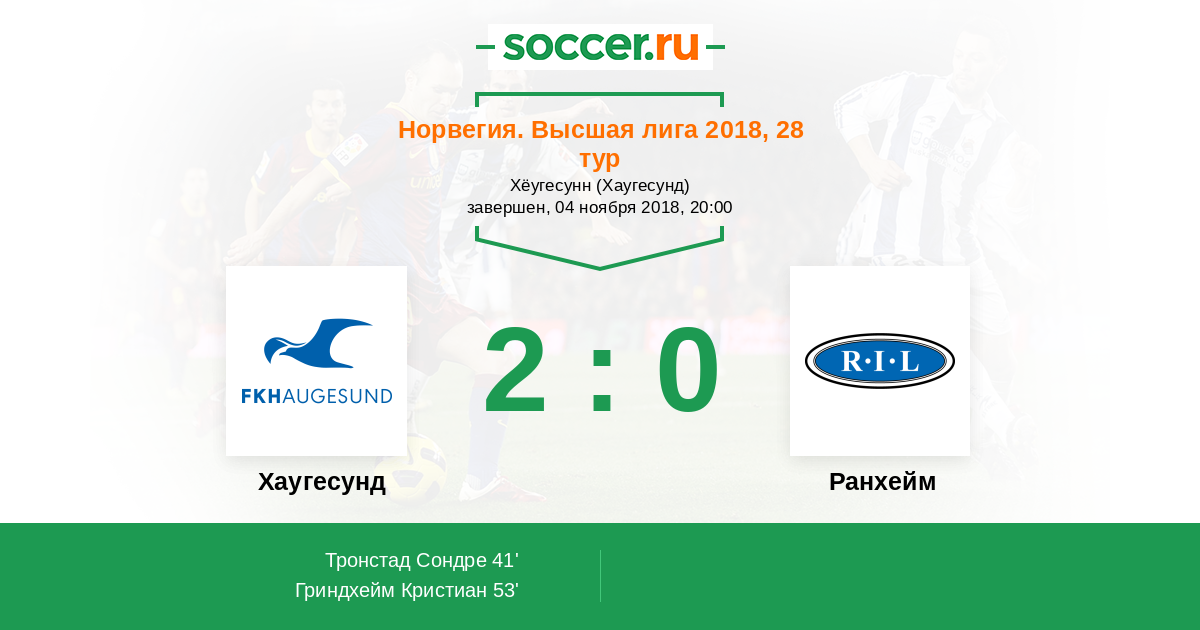 Протокол матча Хаугесунд против Ранхейм