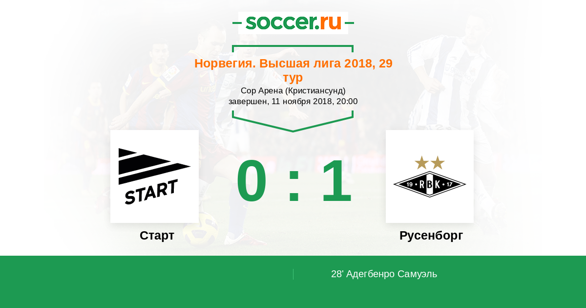 28' (0:1) Адегбенро Самуэль (28) (Мелинг Биргер (3))