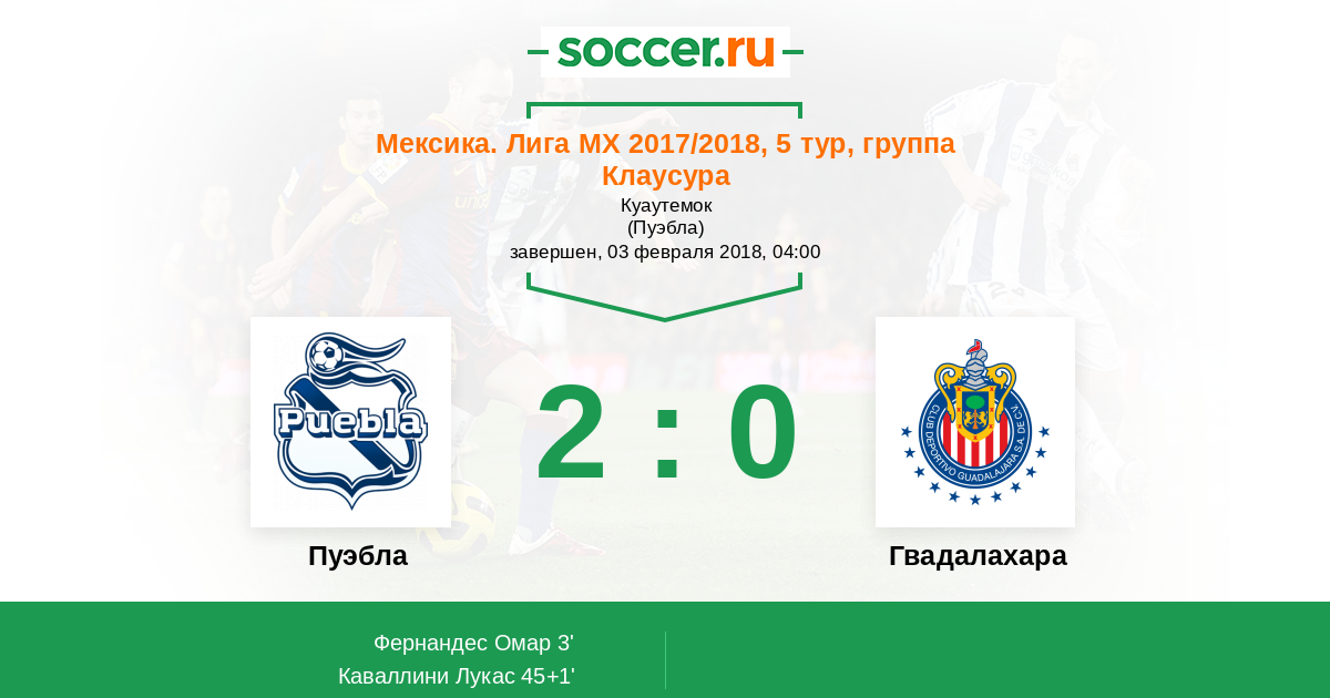 Протокол матча Пуэбла против Гвадалахара