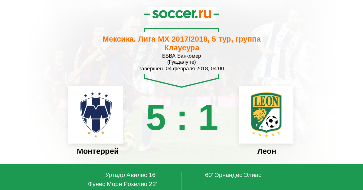 16' (1:0) Уртадо Авилес (18) (Пабон Дорлан (8))