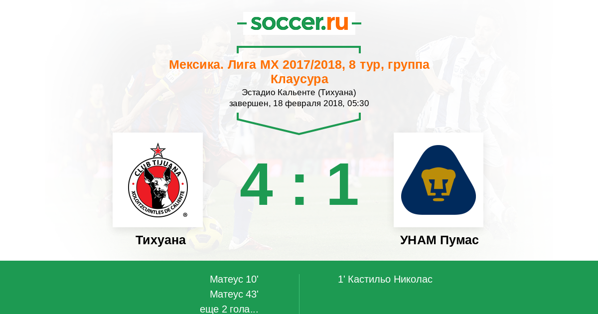 Протокол матча Тихуана против УНАМ Пумас