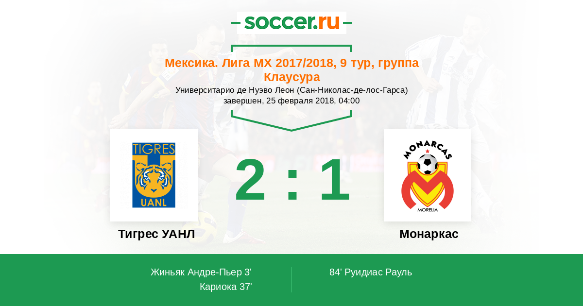 Протокол матча Тигрес УАНЛ против Монаркас