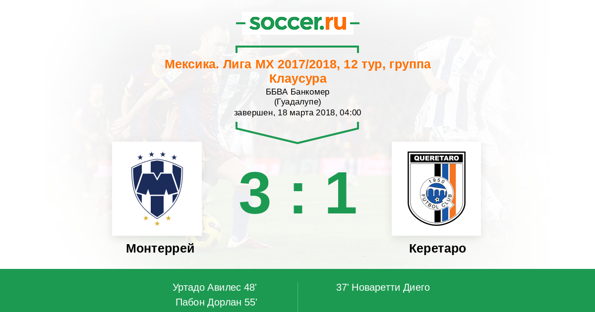 Протокол матча Монтеррей против Керетаро