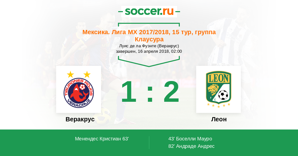 Протокол матча Веракрус против Леон