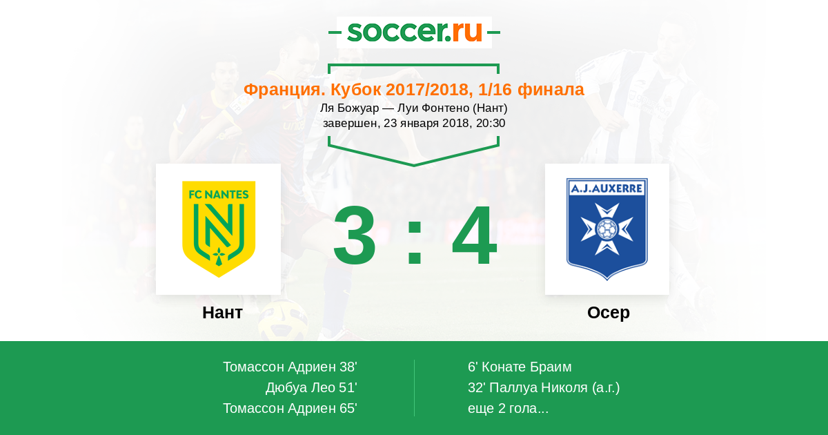 Протокол матча Нант против Осер