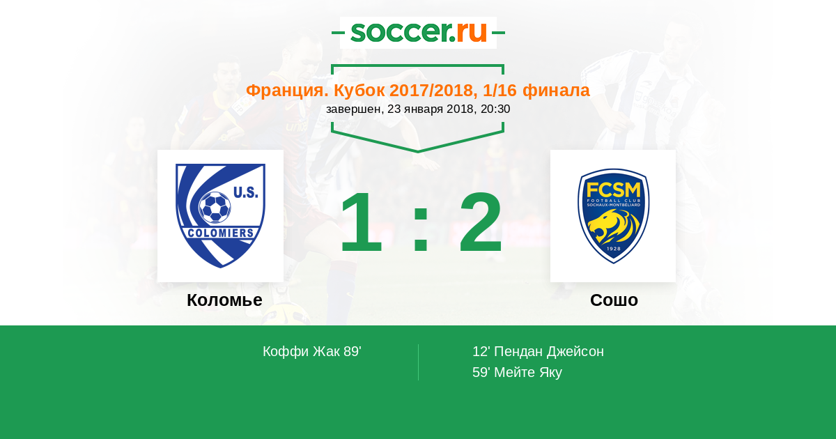 Протокол матча Коломье против Сошо