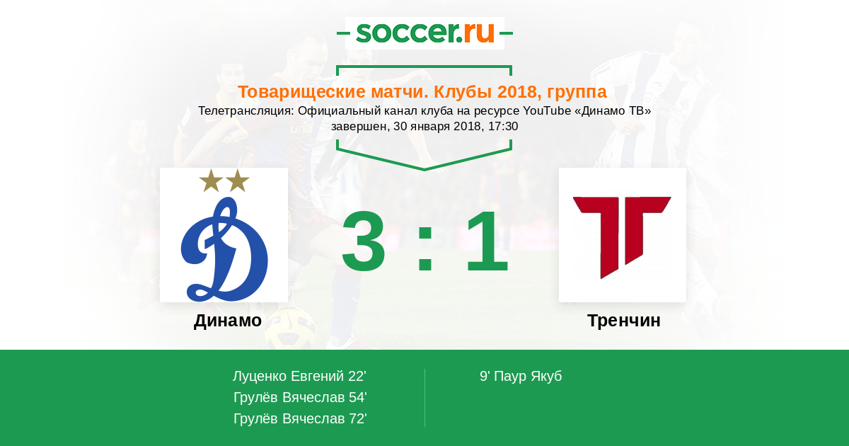 Протокол матча Динамо против Тренчин