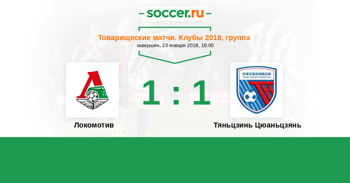 Новости матча Локомотив против Тяньцзинь Цюаньцзянь