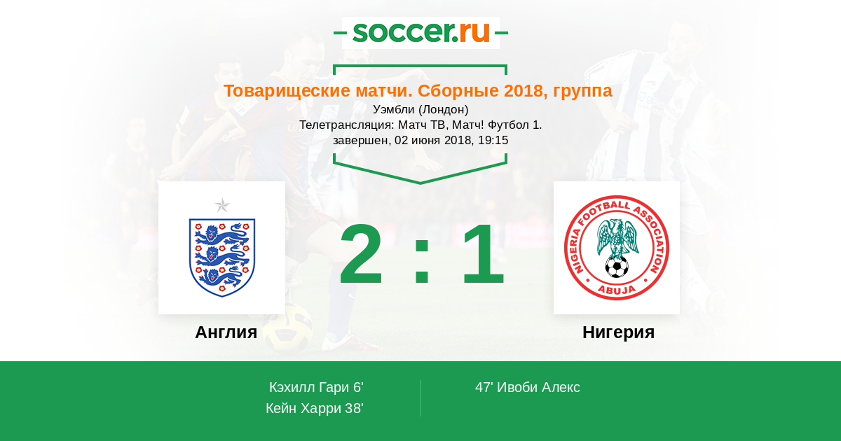 Протокол матча Англия против Нигерия