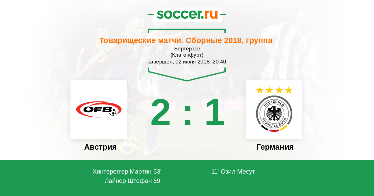 Протокол матча Австрия против Германия