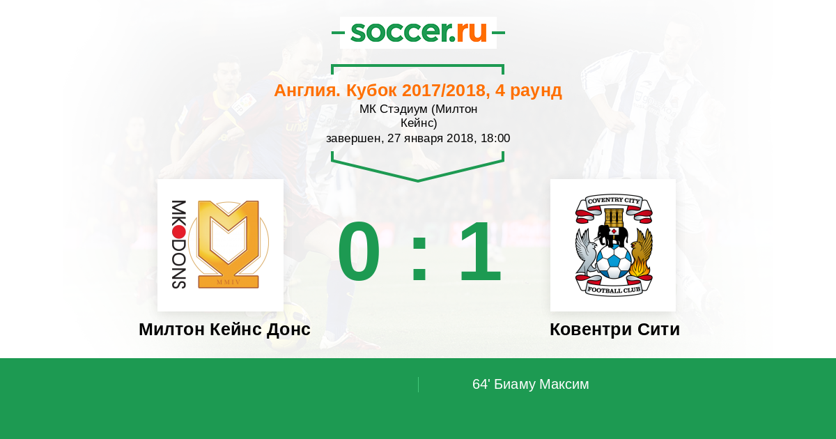 Протокол матча Милтон Кейнс Донс против Ковентри Сити