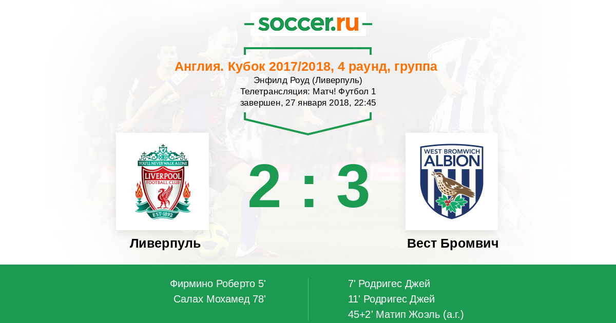 Протокол матча Ливерпуль против Вест Бромвич