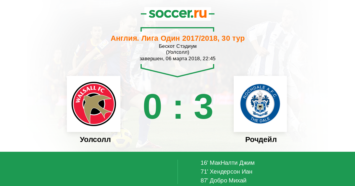 Протокол матча Уолсолл против Рочдейл