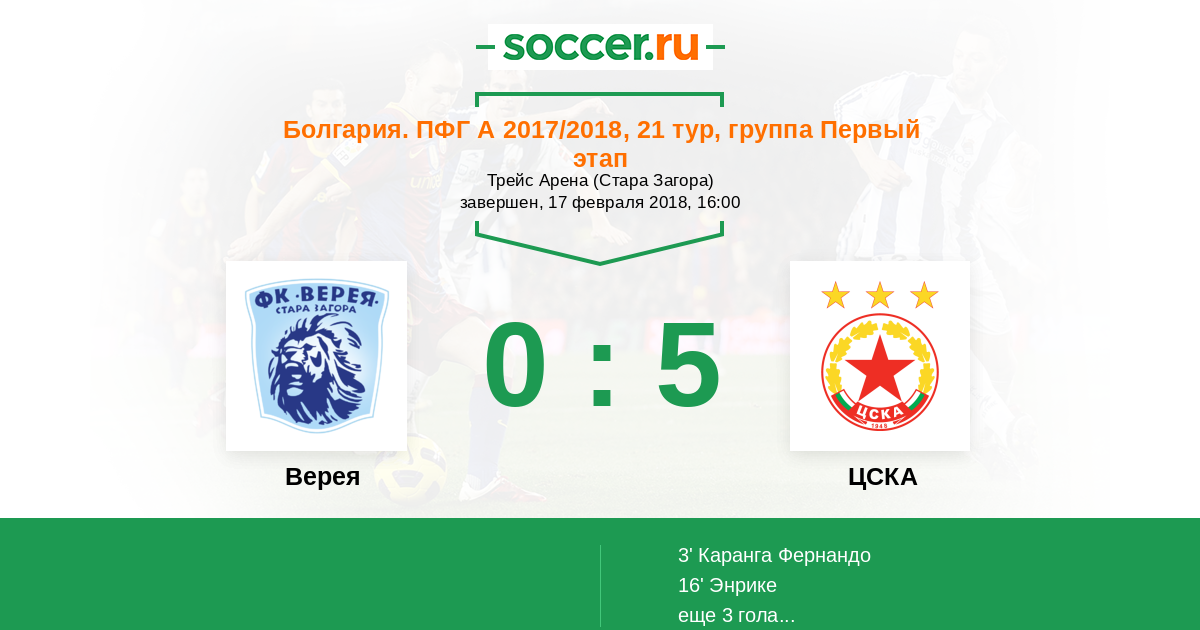 Протокол матча Верея против ЦСКА