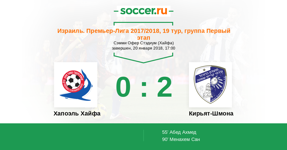 Протокол матча Хапоэль Хайфа против Кирьят-Шмона