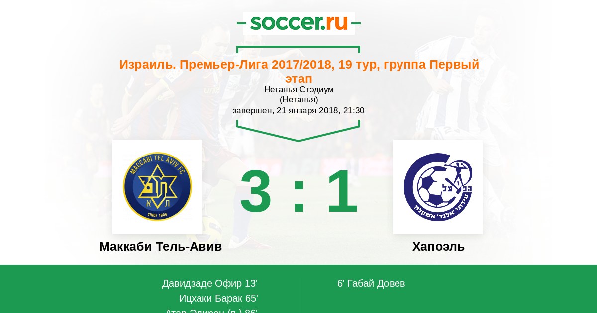 Протокол матча Маккаби Тель-Авив против Хапоэль
