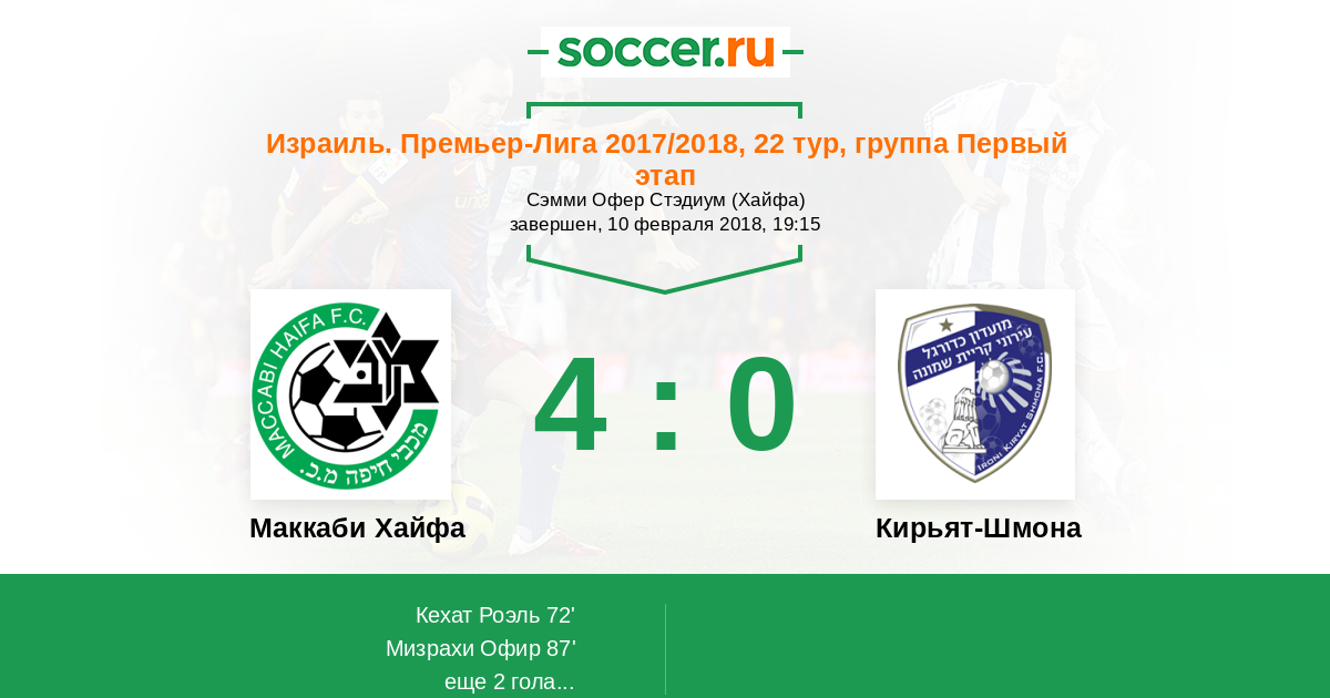 Протокол матча Маккаби Хайфа против Кирьят-Шмона