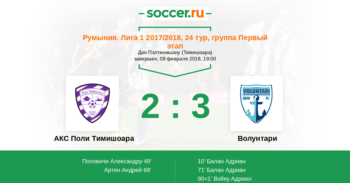 Протокол матча АКС Поли Тимишоара против Волунтари