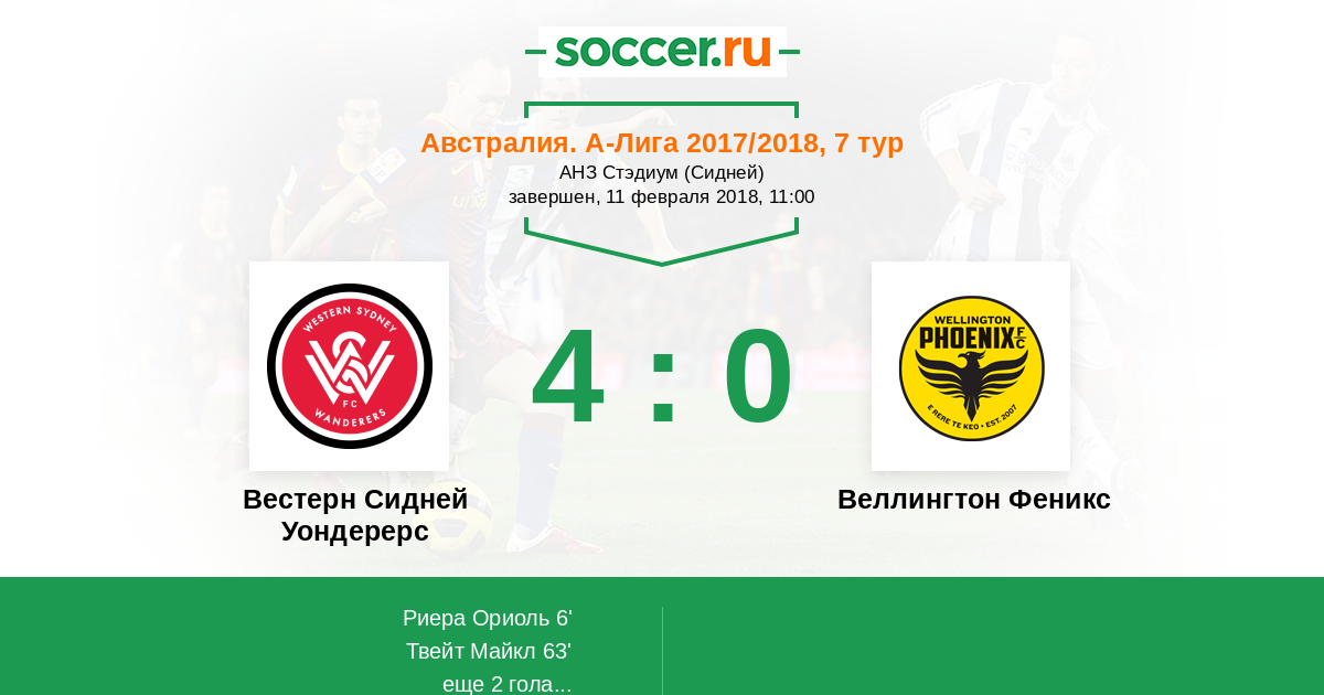 Протокол матча Вестерн Сидней Уондерерс против Веллингтон Феникс