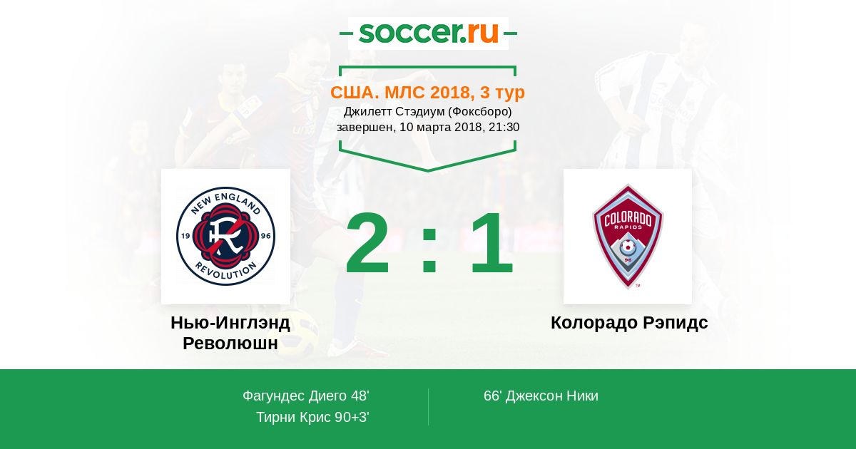 Протокол матча Нью-Инглэнд Революшн против Колорадо Рэпидс