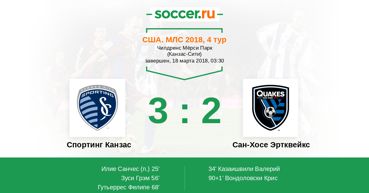 Протокол матча Спортинг Канзас против Сан-Хосе Эртквейкс