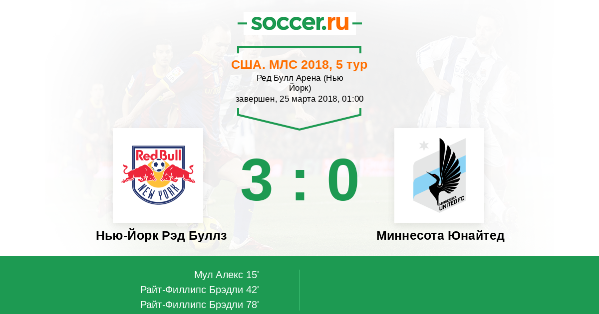 Протокол матча Нью-Йорк Рэд Буллз против Миннесота Юнайтед