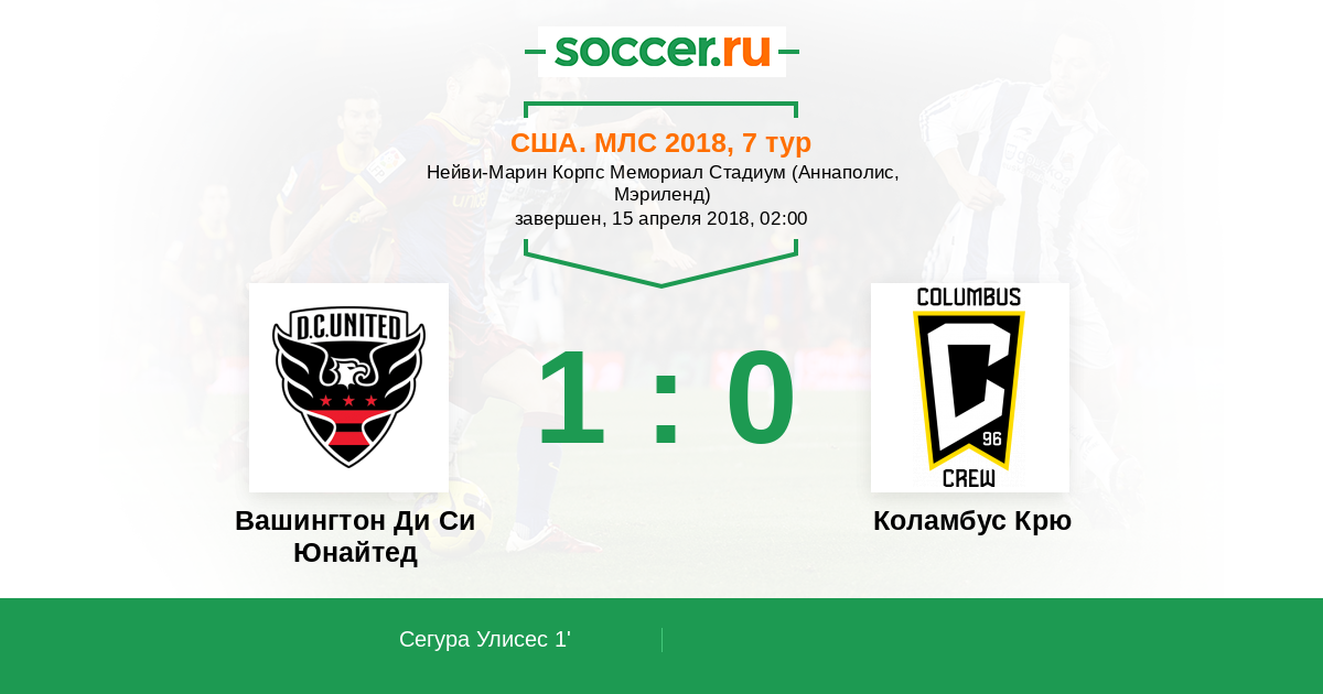 Протокол матча Вашингтон Ди Си Юнайтед против Коламбус Крю