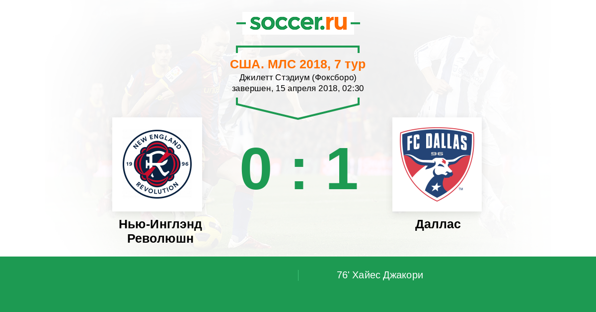 Протокол матча Нью-Инглэнд Революшн против Даллас