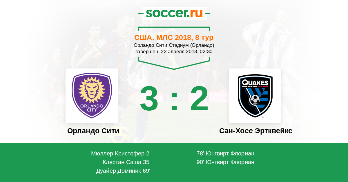 Протокол матча Орландо Сити против Сан-Хосе Эртквейкс
