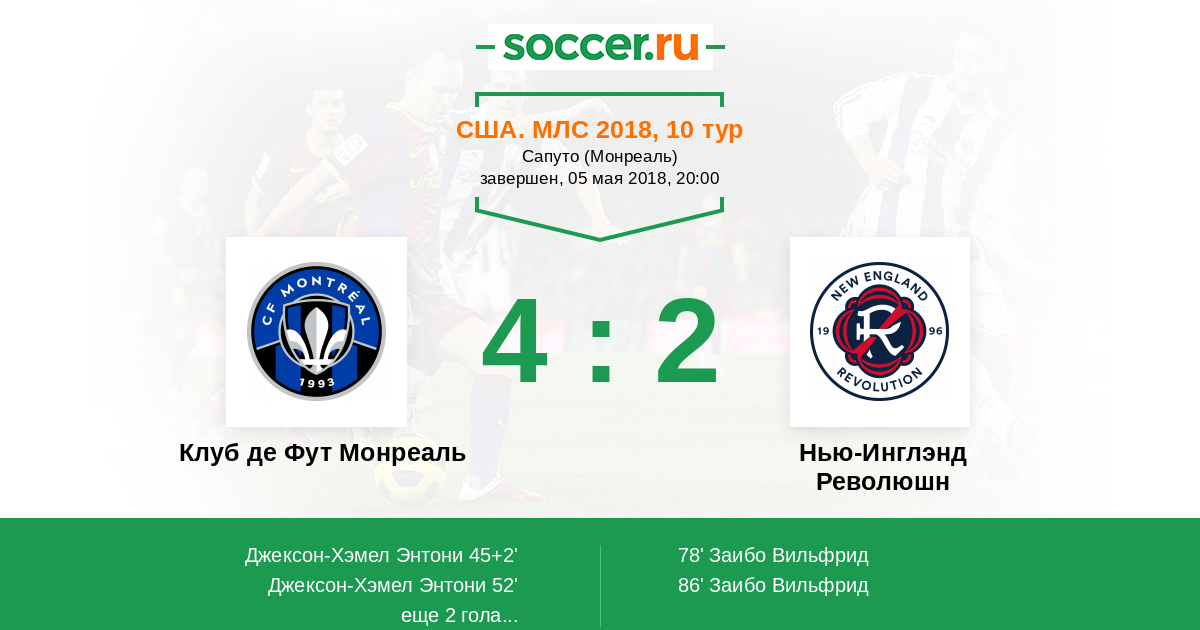 Протокол матча Клуб де Фут Монреаль против Нью-Инглэнд Революшн