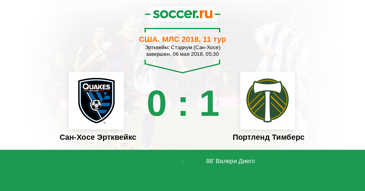 Протокол матча Сан-Хосе Эртквейкс против Портленд Тимберс
