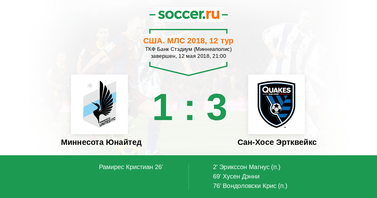 Протокол матча Миннесота Юнайтед против Сан-Хосе Эртквейкс