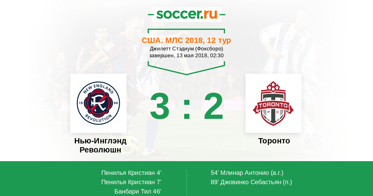 Протокол матча Нью-Инглэнд Революшн против Торонто