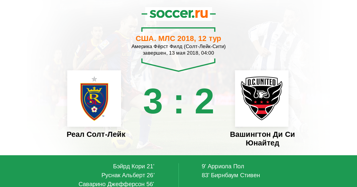 Протокол матча Реал Солт-Лейк против Вашингтон Ди Си Юнайтед