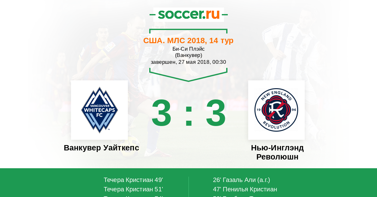 Протокол матча Ванкувер Уайткепс против Нью-Инглэнд Революшн