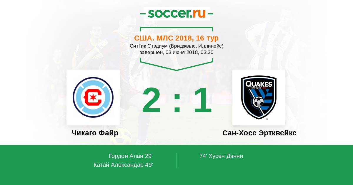 Протокол матча Чикаго Файр против Сан-Хосе Эртквейкс