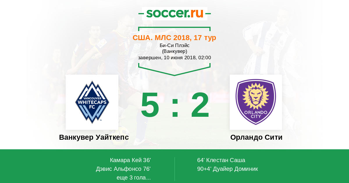 Протокол матча Ванкувер Уайткепс против Орландо Сити