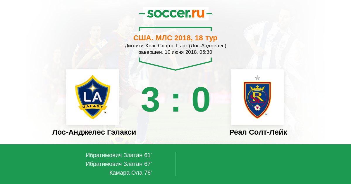 Протокол матча Лос-Анджелес Гэлакси против Реал Солт-Лейк