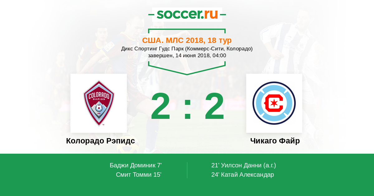 Протокол матча Колорадо Рэпидс против Чикаго Файр