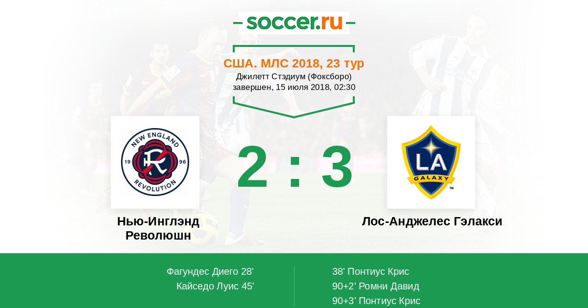 Протокол матча Нью-Инглэнд Революшн против Лос-Анджелес Гэлакси